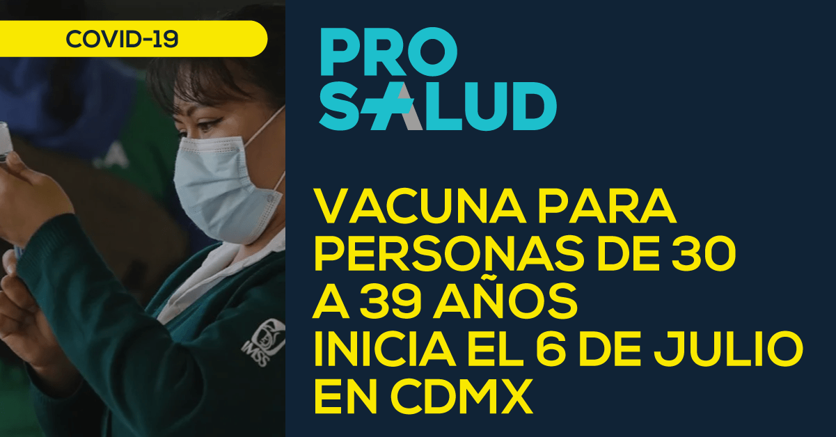 La aplicación de la vacuna contra Covid-19 para las personas de 30 a 39 años de edad comenzará el 6 de julio en la Ciudad de México.